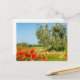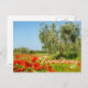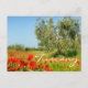 Olive tree in poppy field text postcard