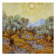 Olive Trees with yellow sky and sun. Vincent Willem van Gogh.Landscape in warm yellow tones. Large garden with large trees. Mountains in the background. There is a big bright sun in the sky. Reproduction of famous works of art images in the public domain.