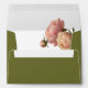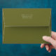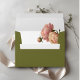 These lovely wedding invitation envelopes feature a chic olive green jacket, while the inside reveals a contrasting crisp white with blush rose accents. Sender address at the back and lined area for handwriting addresses individually. Leave the text box empty if no lines are preferred. TIP: Use a thin white marker for handwritten addresses against the olive green. Alternatively opt for matching address stickers in the same collection.