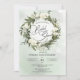 Olive wreath forest green leaves white roses boho invitation