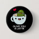 Olive You A Latte Funny Food Pun Dark BG 6 Cm Round Badge