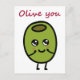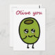 Send a smile with this adorable, hand-drawn "Olive You" postcard! Featuring a cute little olive with big sparkling eyes and a sweet blush, this design is perfect for letting someone know just how much they mean to you (because puns make everything better, right?). This unique artwork adds a playful twist to your message, whether it's for a loved one, a friend, or anyone who loves a bit of foodie humour. Share the love and the laughs – because "olive you" means everything!