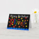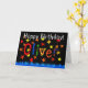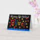 A bright and cheerful birthday card for anyone called Oliver. The letters of the name and the sprinkling of stars are made from handpainted paper collage on a black background. Blank inside for your own message. See also matching mug.