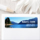 Olympic National Park, Seattle, U.S.A. Beautiful landscape photography of blue sky, mountain, lake, trees and deck. Address label for personal or business.