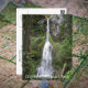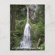 Travel postcard featuring a scenic photo image view of the lovely Marymere Falls along a forested trail in the Olympic National Park, Washington State. Select from matte or glossy style card.