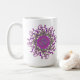 Buddhism & Yoga inspired mug design with Om (aum) symbol in mandala damask printed on one side and Namaste sanskrit on the other side.