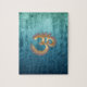OM blue brass gold damask Asia Yoga Spiritualität Jigsaw Puzzle