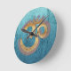 OM blue brass gold damask Asia Yoga Spiritualität Round Clock