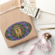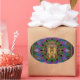 A beautiful unique meditative Buddha mandala design with an aura of gold, purple, blue and green colours.