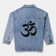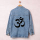 Sanskrit Om symbol in bold black silhouette on denim jean jacket. A great way to express your spiritual beliefs in style! Perfect gift for Buddhists, Hindus and anyone interested in eastern spirituality!