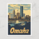 Omaha Nebraska USA Art Vintage Travel Illustration Postcard
