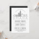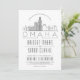 A unique wedding invitation for a marriage taking place in the beautiful city of Omaha, Nebraska. This invitation features a stylised illustration of the city's unique skyline with its name underneath. This is followed by your wedding day information in a matching open lined style. On the reverse side of the invitation is a deep grey colour to complement the look and feel. All individual elements of the invite card are unlocked so feel free to change or add any details necessary by using the customisation function. You can add a photo to the reverse side and add a black and white filter to it. Also, you can experiment with the many unique thicker paper types and cuts available. Matching RSVP cards, address labels, stickers, tote bags, and more are available.