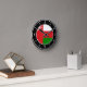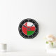Oman Flag Elegant Round Clock with the Oman flag positioned in the middle and lovely white clock numbers on the clock edge. Delightful black background with the white oval elements finalize the design putting emphasis on the elegance. Beautiful combination of black and white with the skillful integration of the national flag colors make this clock the perfect gift and the great show piece on the wall. © CountriesOfTheWorld