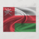 Postcard with the flag of Oman in wavy fabric style design. This design features the Oman flag colours and design with a beautiful waving material textured effect. This flag design is a great way to show you are proud to be from Oman.