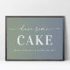 Elegant Ombre Dusty Blue & Leaf Green Have Some Cake Wedding Sign - in beautiful handwriting script and your personalised text. A stylish yet simple design in a soft fading ombre gradient background. Just click the edit using design tool link, shown under the text personalisation area on the right, and choose your custom colour background. This sign poster template makes it fast and easy to create stunning additions to your wedding decor. Signs can be enlarged, there are many sizes to choose from, as well as options for custom framing and matting.