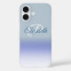 This iPhone case design features a pastel blue ombre background with darker blue script name and white initial letter monogram. Easily personalise the text fields, remove any text or edit using the design tool to select a font style, size, and colour you like.