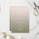 Simple Ombre Blush Pink & Green Wedding Ceremony Program. This modern minimal Order of Services Card is simple classic and elegant with a subtle ombre gradient fade and a pretty signature script calligraphy font with tails. Shown in the new Colorway. Available in several colour options, or feel free to edit the colours from within the editor (click customise further while personalising).