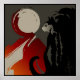 Shadow of a cat (ombre d'un chat) against an abstract background of red, black, and beige colours. Original art of artist Margaret Loftin Whiting.