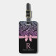 Elegant and feminine luggage tag featuring pink tied bowon luxury black ombre glitter zebra background.