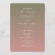 Simple Ombre Green & Dusty Rose Wedding Ceremony Program. This modern minimal Order of Services Card is simple classic and elegant with a subtle ombre gradient fade and a pretty signature script calligraphy font with tails. Shown in the new Colorway. Available in several colour options, or feel free to edit the colours from within the editor (click customise further while personalising).