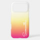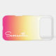 This stylish phone case has a hot pink yellow to white ombre fade. Your name is displayed in a modern hand written script font.