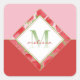 Ombre Monogram + Strawberry Red & Green + Pink Square Sticker