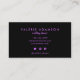 Business Card with an Ombre Pink and Blue Stripes Texture Abstract with Black Central Square with Name Pink Signature Script and Career and Details against Plain Black Background in Back.