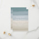 A beach wedding save the date featuring a watercolor seashore inspired ombre background. Personalise the white text with details of your occasion.