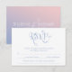 A dreamy fantasy wedding response card, features a Rose Quartz and Serenity ombre background, all the details are spelled in a mix of a gorgeous calligraphy and fairy tale typo.