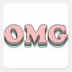 OMG layered bubble text in peach pink, coral pink, pastel green and sea green.