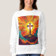 "A stunning visual representation of divinity, this design captures the essence of spiritual power and grace. Radiant beams of light surround a majestic figure, symbolising omnipotence, wisdom, and eternal love. Perfect for those who wear their faith with pride, the artwork blends modern aesthetics with sacred motifs, creating a timeless piece of wearable art."