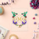 This showstopping clear acrylic invitation represents the intersection of natural history art and contemporary luxury materials. Twin hummingbirds, rendered with jeweler's attention to detail, display iridescent emerald plumage and ruby throat patches that appear to glow against crystal-clear transparency. Your monogram takes center stage in sumptuous gold typography, each letter carefully proportioned and adorned with delicate shading, all enclosed within an oval frame studded with brilliant diamonds that sparkle magnificently on acrylic. Colorado's state flower, the columbine, blooms in deep purple, illustrated with such botanical precision that each petal's structure is individually discernible while appearing to float in transparent space. The composition achieves perfect balance between ornate detail and elegant restraint, enhanced by the dimensional quality of premium clear acrylic.