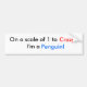 On a scale of 1 to I'm a , Crazy, Penguin! Bumper Sticker