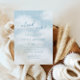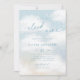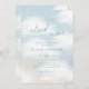 Elegant blue calligraphy and dreamy watercolor clouds "We Are On Cloud Nine" baby shower invitation.