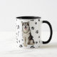 A beautiful Alaskan Malamute dog looks out at you from two sides of this mug. The text between the two images says "On the 8th day, God created the MALAMUTE and called it VERY GOOD". The dog images and the white oval banner containing the text fields are placed on a white background with black paw prints.