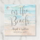These custom favor tags feature a calming seaside watercolor design on the front in soft shades of blue and tan, capturing the relaxed, natural feel of the ocean meeting the shore. “On The Beach” appears in flowing script, with the couple’s names and wedding date below in a clean serif font for a polished and balanced look.