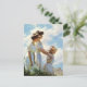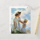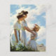 A fine art postcard with the painting by Charles Courtney Curran (1861-1942), On the Cliff (1910). He was an American Impressionist painter. Two women and a young girl, all dressed in white, stand on a cliff on a beautiful day, surrounded by a brilliant blue sky adorned with fluffy white clouds.