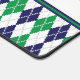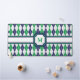 Argyle goes 8-bit with this classic navy blue, kelly green, and white colour scheme with a light grey contrast stitch creating a perfect pattern for the golf course. Customise the monogram in the circle with your initial to create a unique desk mat for your work or play space.