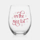 Flaunt your "nice list" status this year with our cute and festive Christmas glassware featuring "on the nice list" in vibrant holiday red, accented with wintry snowflakes.