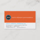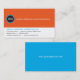 Bright orange and cyan colours with a simple monogram in a black circle make an effective graphic statement on this business card. Great card for a company looking for a bold look and is not afraid of colour. Versatile enough for a variety of companies and businesses including marketing and communications, consulting or information technology. Available in alternate colours with matching products.