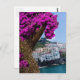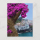 Design shows a beautiful scenery of Mediterranean coast with a tree of buganvillas
