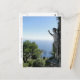 Postcard of a lovely statue (Statue of Emperor Augustus) on top of Mount Solaro on the Isle of Capri, Italy. This is a view looking down on the famous rock formations known as the Faraglioni. The Faraglioni are three blocks of rock that have survived coastal landslides, erosion by the sea and all manner of atmospheric corrosion. It feels like the "top of the world" looking down from here. Digital photography by Sue Melvin