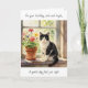 A sweet birthday card with a sweet cat theme with an illustration of a black and white cat sitting on a flower filled window sill. Inside is a sweet poem wishing someone a relaxing day.