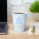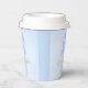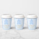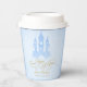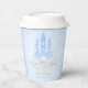 Boy fairytale "Once Upon A Time" baby shower paper cups for a boy or girl in blue and gold, with beautiful typographic flourishes. Script text reads Once Upon A Time" in gold, with a magical castle.