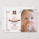 This cute "once upon a time" girl's first/1st birthday photo invitation features a pink book designed with a castle. The reverse side features a burgundy background with floral patterns. Personalise it for your needs.