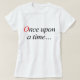 A t-shirt with the traditional beginning to many stories and fairy tales " Once upon a time..." written in a nice story book style with carefully spaced letters and a red first letter. The letting has also been slightly roughened to give it a paper printed quality as if it has been cut out from a book.