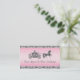 Elegant pink black and white floral damasks with wedding horse and carriage, business card template.