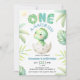 One A-Saurus Cute Dinosaur 1st Birthday Invitation