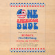 "One American Dude 4th of July First Birthday Invitation" is a cheerful and patriotic invitation designed for a little boy's first birthday celebration on Independence Day. The title "One American Dude" adds a playful and charming touch, celebrating both the child's milestone and the patriotic theme of the event. This invitation likely features elements such as stars, stripes, red, white, and blue colours, creating a cohesive and festive look. It sets the tone for a joyous and memorable birthday party filled with fun, fireworks, and the spirit of American pride.