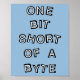 One bit short of a byte text is a funny gift design to tickled the funny bone of befuddled computer programmers, engineers, system admins and family geeks.